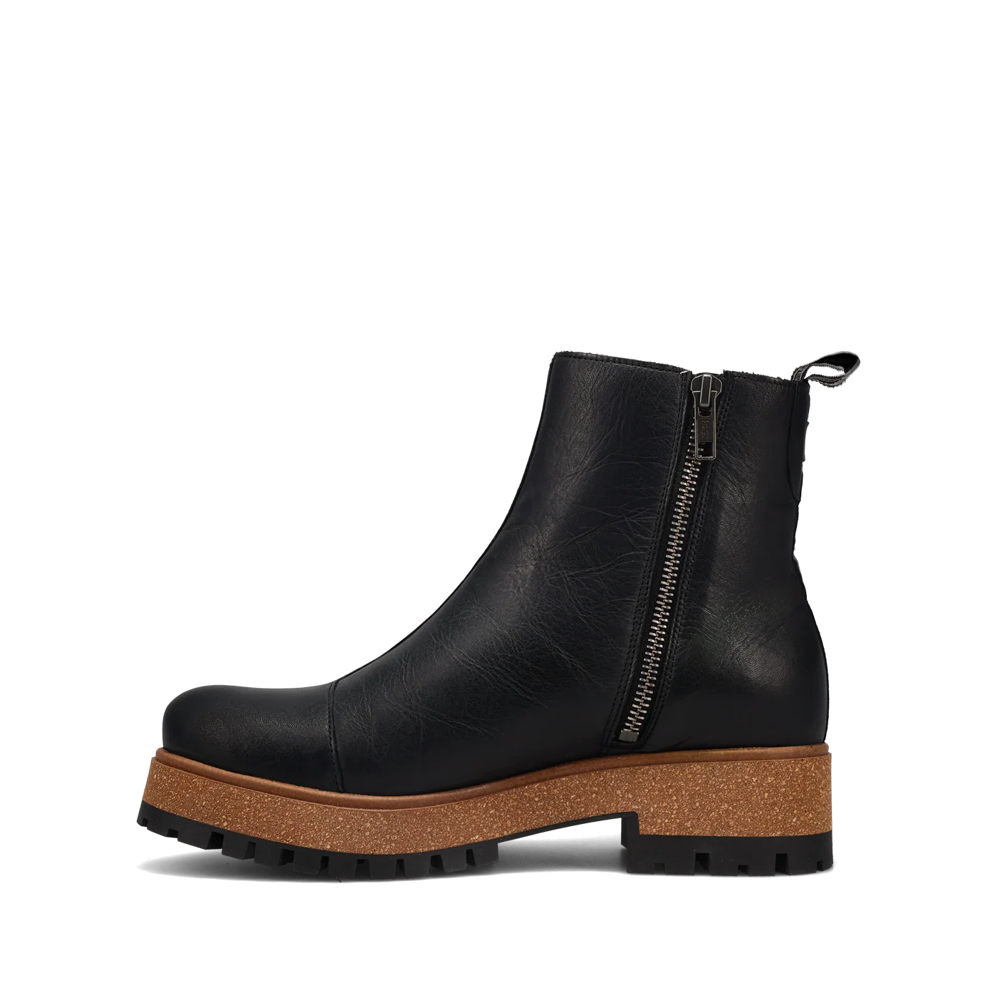 Go Downtown, uptown or any town with this new European smooth leather boot with an inside zipper, making these a breeze to get on & go! The cork and polyurethane midsole is extremely lightweight and just the right amount of platform to give that extra height along with a lug rubber outsole that will not quit! Faux fur & leather lining mold to your feet and give you that extra softness you deserve.
