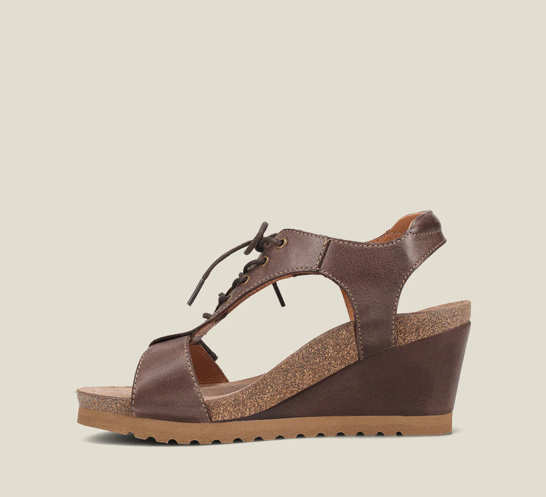 This is the wedge you've been wishing for! Our new Tie Wish cork and leather wedge sandal with a T-strap design and feminine tie for adjustability, giving you style AND comfort with our exceptional arch support, made in Portugal.